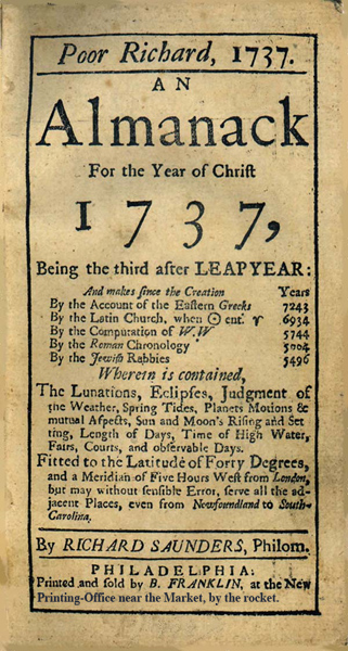 the pseudonym of “Poor Richard”. A prototype of the Farmer’s Alamanac, it